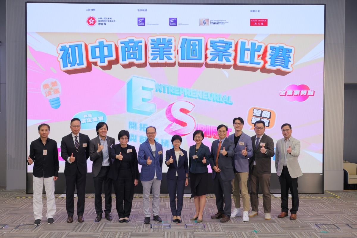 In today’s fast-evolving world, where technology is reshaping industries at unprecedented speed, creativity and innovation have become indispensable. In support of the Chief Executive’s Policy Address encouraging schools to foster entrepreneurial and innovative mindsets, the Education Bureau’s Technology Education Section has partnered with the Centre for Entrepreneurship and the Centre for Family Business of the Chinese University of Hong Kong Business School, together with the Hong Kong Association for Business Education to launch the inaugural “Junior Business Case Competition”. This exciting initiative offers junior secondary students a platform to dream boldly, think creatively, and develop fresh business ideas —all while nurturing positive values and a future-ready mindset.