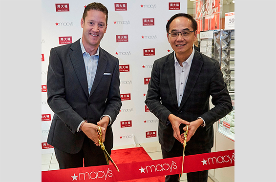 集團於 2016 年 11 月 12 日在著名的美國梅西百貨開設周大福珠寶品牌首間在美國的店中店。新店座落於紐約市最熱鬧的地區之一、亦是梅西百貨其中一間最受歡迎的分店─法拉盛梅西百貨。該新店面積約 500 平方呎,提供珠寶鑲嵌首飾、黃金產品、鉑金和 K 金首飾等多元化產品,其中由周大福設計兼分銷的 24K 足金首飾更是法拉盛梅西百貨前所未有的產品。
