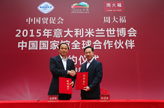 周大福珠寶集團有限公司 (「周大福」或 「公司」;及其附屬公司,「集團」;股份代號: 1929)為擁有85 年歷史、全球市值最大的上市珠寶公司,今天欣然宣佈榮獲以中國珠寶行業的領袖企業身份,應邀成為2015 年意大利米蘭世界博覽會中國國家館之「全球合作伙伴」,將積極配合及參與米蘭世博會中國館的前期推廣及世博會期間的各項活動。